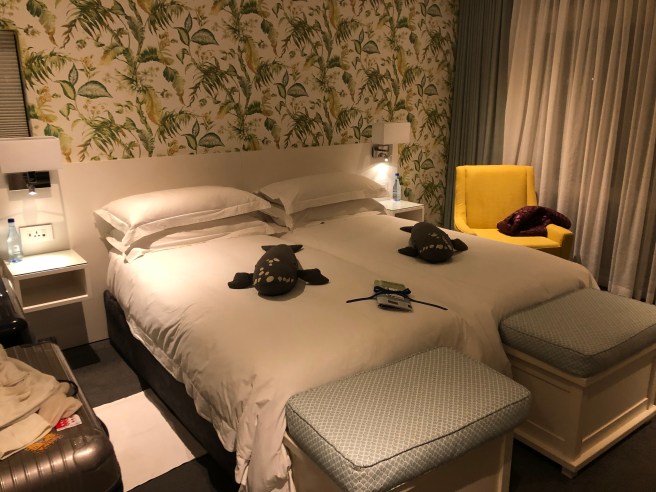 Wir beziehen das Zimmer im One Marine Boutique Hotel mit Blick auf den Ozean.