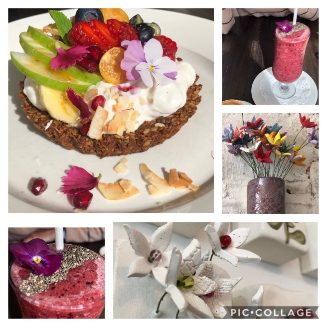 Außergewöhnliche Speisen sind im Angebot. Köstlich. Ich wähle Granola, Double Cream und Fruits. Habe jedoch nicht mit der unten abgebildeten Tarte gerechnet. Toll und lecker. Müsli mal anders. Sandra nimmt Ei und Brot und Smoothie. Später noch einen Schokomuffin. So gestärkt finden wir auch einen ATM bevor wir in den Nature Park Te Hoop fahren. Heute sitzen wir viel im Auto.