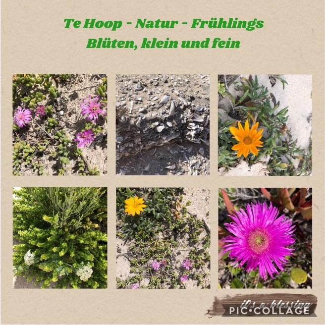 die Weite ist einfach faszinierend. Die Wellen brechen so laut, dass man kaum das eigene Wort versteht. So wandern wir durch die Landschaft und entdecken hübsche Blumen am Wegesrand und Muscheln über Muscheln. Hier wird neuer Sand produziert von den Mächten des Meeres.