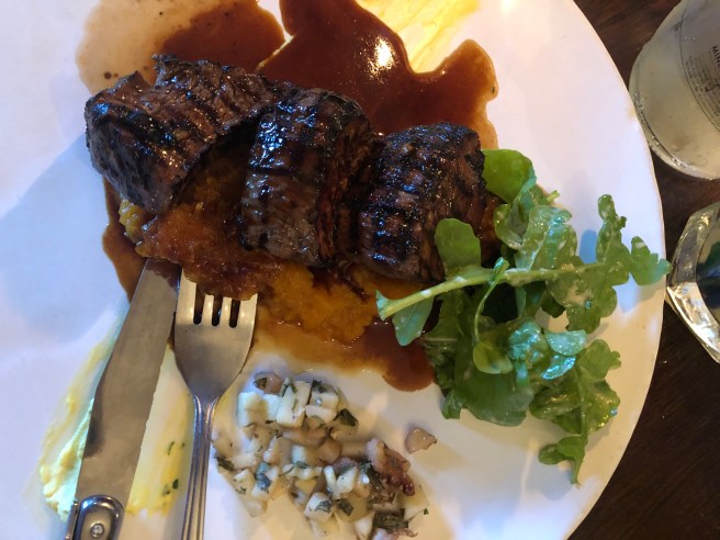 Endlich gibt es Strauß. Köstlich, zart mit einer passenden Soße serviert lassen wir uns diesen Genuss munden. Hmmmm
