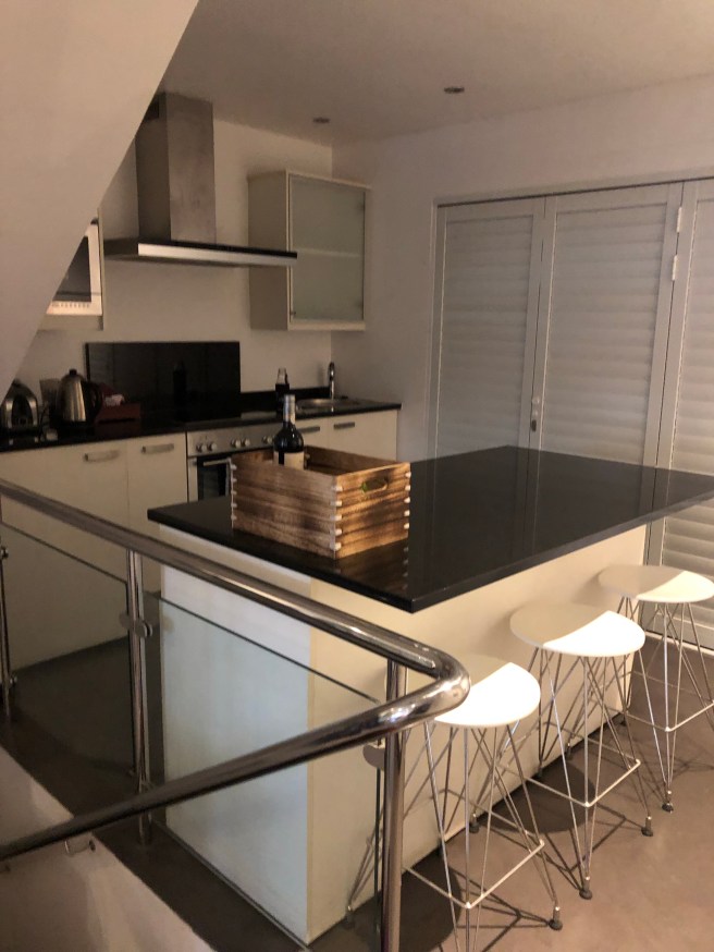 Dann packe ich mein Chaos mal ordentlich ein, koche mir in unserer Küche einen Nespresso und einen Tee.
