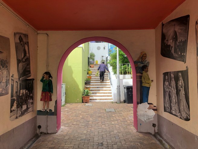 Nun aber Frühstück und auf in den nahen Bezirk Bo-Kaap – bunte Häuser schauen. Schnell sind wir dort und tatsächlich haben die Bewohner kräftig in die Farbtöpfe gegriffen. Eine Bonbonwelt der Farben macht sich auf. Offenbar ist das ein Bezirk, der von Farbigen bewohnt wird, da uns sonst nur Touristen begegnen.