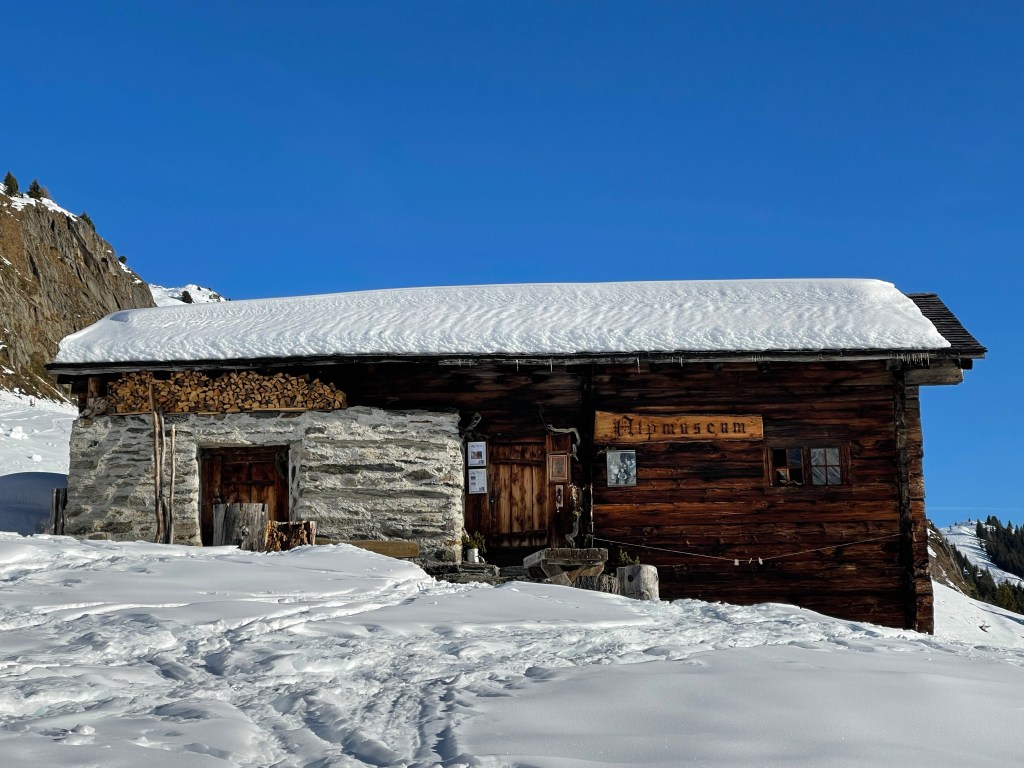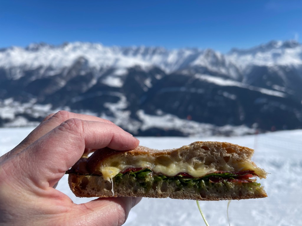 Einfach schön unterwegs zu sein.Raclette – Trockenfleisch Baguette auf Heidis HütteIn der kleinen Bahn – lassen wir den Schnee hinter uns und starten in den Frühling