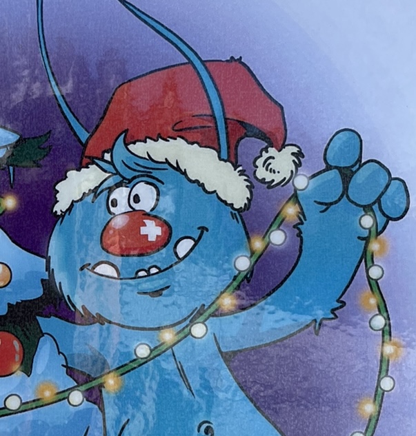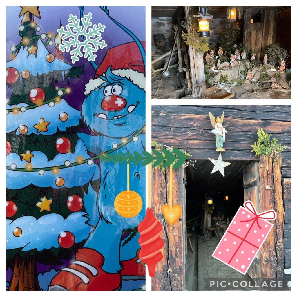 Den Kindern geht Gletschi gar nicht aus dem Kopf. Roberta geht mit ihnen hinunter zum Stall. Hier haben früher die Kühe gestanden. Im Sommer sind sie auf der Weide. Sie kommen nur zum Melken herein. Da ruft Finn: „ Gletschi!“ Tatsächlich. Da ist das blaue Kuschel-Monster. Roberta lacht. „Wusste ich es doch! Gletschi hat uns den Tannenbaum für die Krippe hier oben im Stall gebracht. Nun ist es noch schöner hier im Stall!“