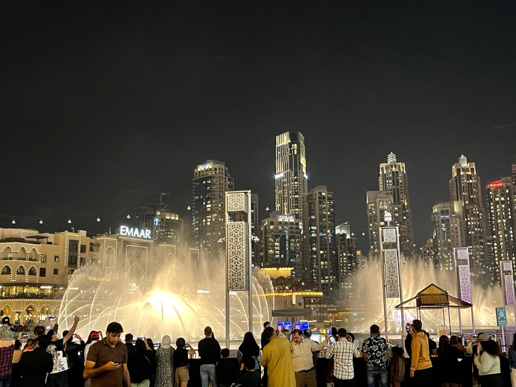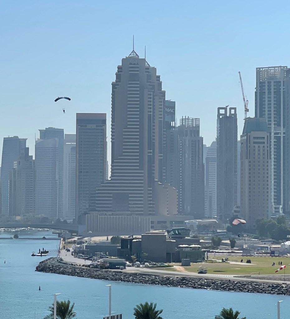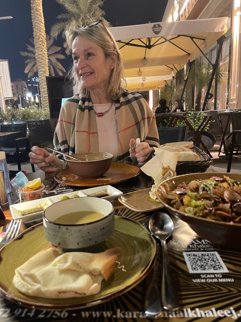 Nun ist dieser bunte, abwechslungsreiche Urlaub gefühlt quer durch die Welt auch Vergangenheit. Ein kleines Resümee. Positiv denken hilft (Start auf AIDA) wir sparen uns reich 🙂 (im Sukh, Geschenke auf AiDA, Shopping Festival – Angebote satt), EXPO lohnt sich immer, VAE Pavillon – beeindruckend durch die Falken nachempfunden Architektur, in Deutschland schaukeln wir Energie, DP Pavillon zeigt uns die richtungsweisende Mobilität per „Hyperloop one“ in Röhren (mit 1100 km/h in 19-12 Minuten Dubai/Abu Dhabi, ist in Bau, Fertigstellung und Inbetriebnahme 2030) und in der Luft auf, Österreich kommt ohne Großbildleinwände und digitaler Kopfvermüllung aus und schafft Ruhe und Entspannung, das fantastische arabische Essen. Am Morgen und am Abend. Wohnen im 82 Stock, der immerwährende Lärm, Geräuschkulisse die müde macht, Geruch-Bombardements immer und überall, (German? My Brother is Doctor in Frankfurt) , Alkohol und höher (Burj Khalifa), weiter (Marina – Palme -Business-District – Deira) , schneller (Fahrer/innen der Luxuswagen, die bei der Anfahrt zeigen, was das Auto kann) – bunter (gefühlt alle Kulturen der Welt, Mode der Welt, Religionen der Welt), Offenheit und Freundlichkeit.