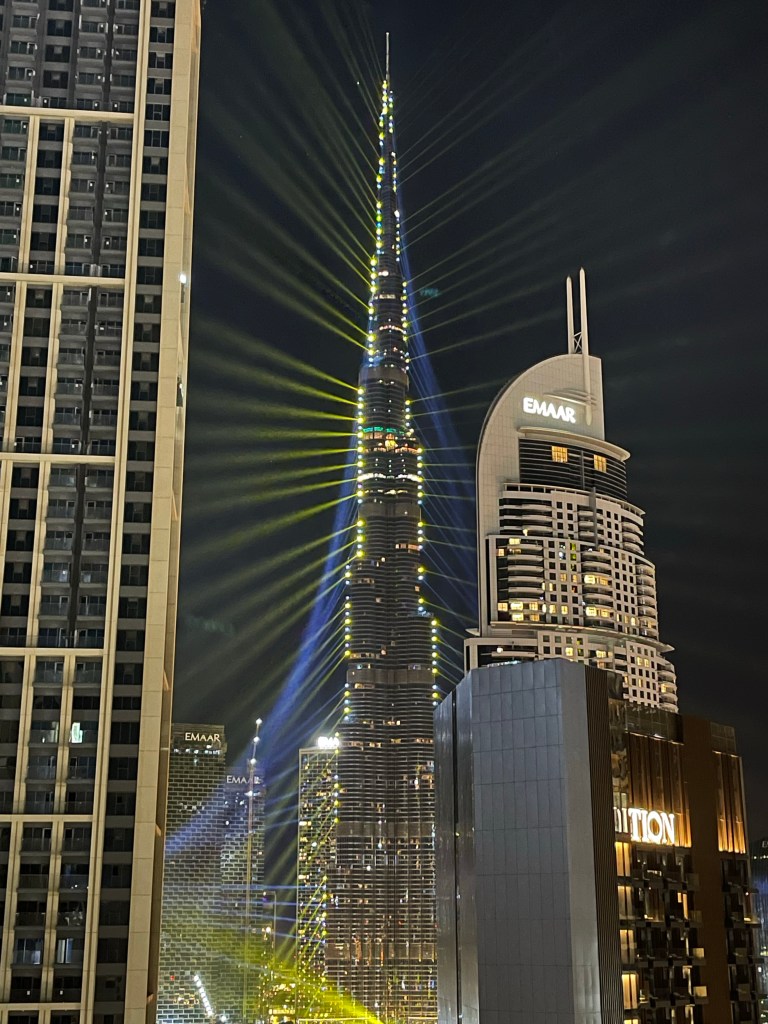 Schon wieder neigt sich ein erfüllter, schöner Tag dem Ende. Es gibt noch ein türkisches Eis auf die Hand. Das hat mich nicht überzeugt, obwohl der Eisverkäufer uns beide sehr an die Eisverkäufer in Istanbul erinnerten. Schauspiel pur! Zuletzt noch ein Blick auf den beleuchteten Eingang des Palace Hotels. Die kleinen bunten Autos bringe ich doch bestimmt wieder unter in eine kleine Geschichte für Lelia :-). So werden die kleinen schon an die Autowelt herangeführt. Zuhause ein Blick auf die blinkende Welt der Lichter der Straße und des Burj Khalifa. Morgen geht es dann aufs Schiff! 🙂