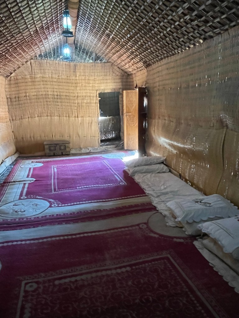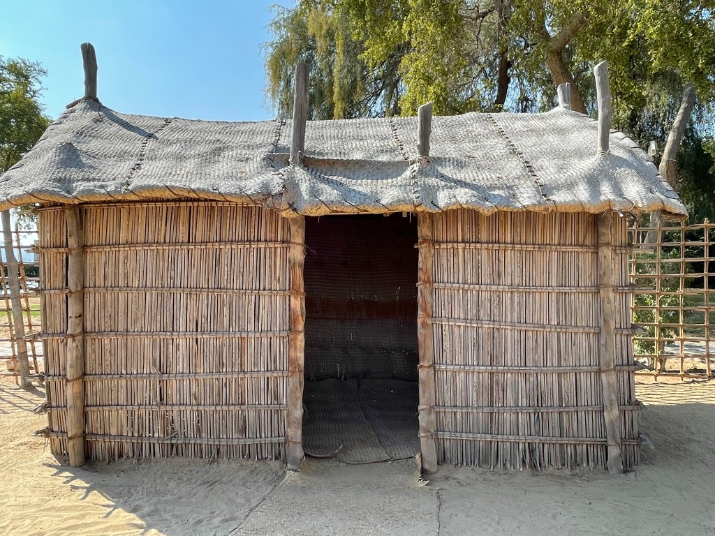 In dieser unsäglichen Hütte haben noch im letzten Jahrhundert die Perlentaucher gelebt. Unvorstellbar! Es gab auch etwas grössere Langhäuser. Fläche ca 3/4 x so groß!