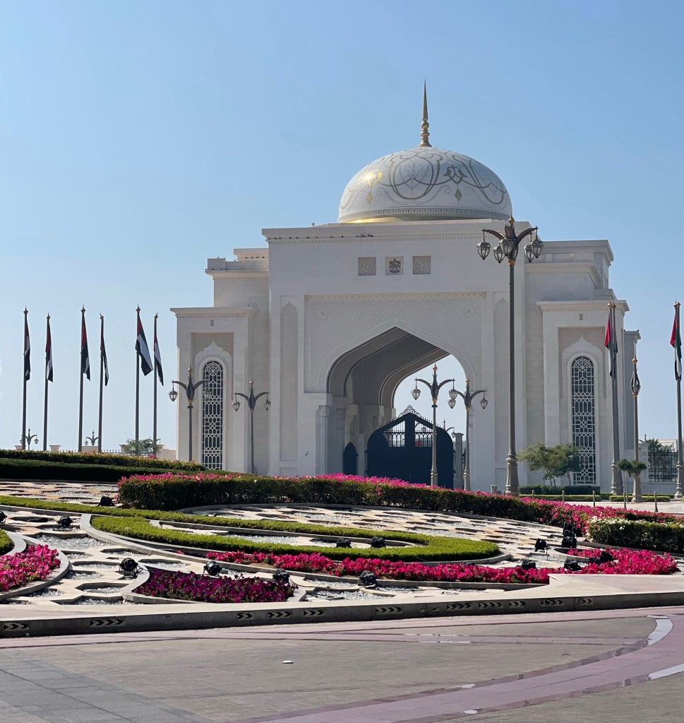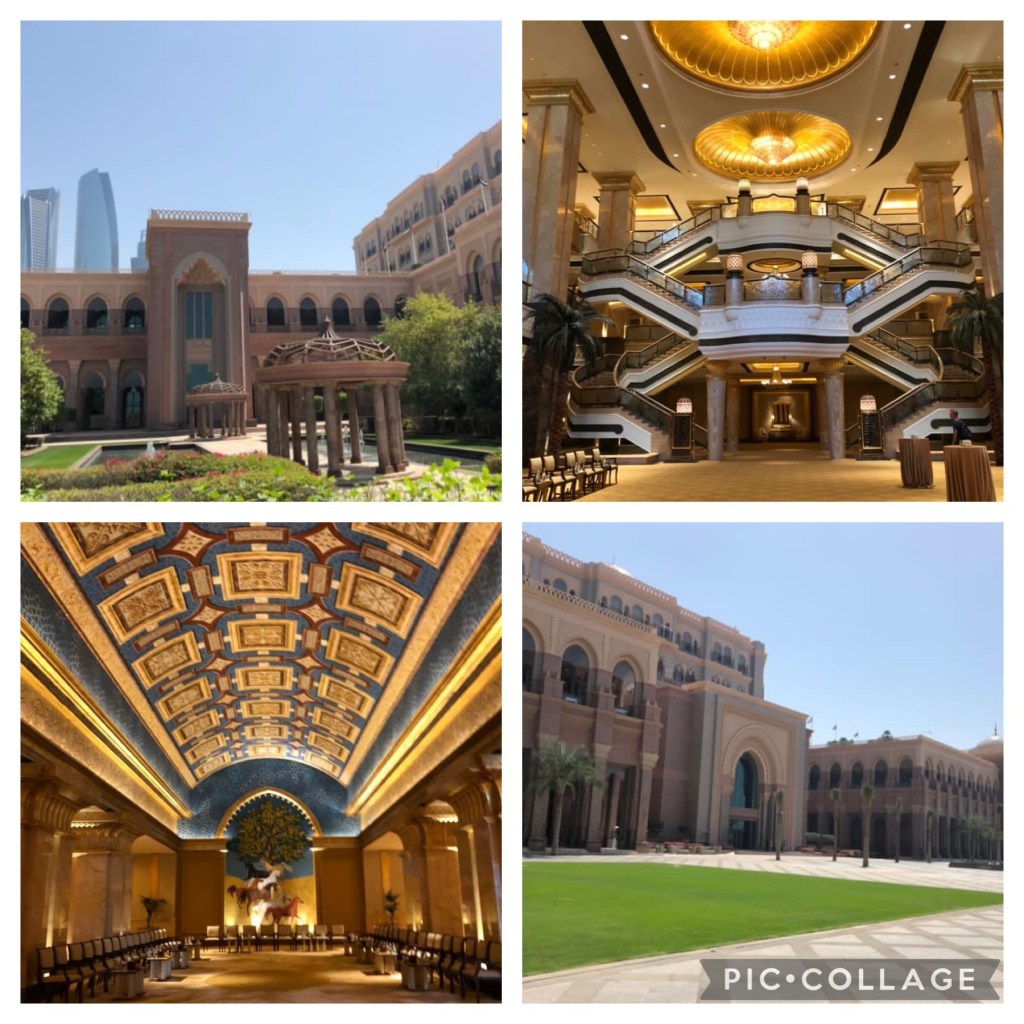 Es geht weiter zum 7 Sterne Abu Dhabi Palace Hotel. Es gehört zur Kempinski Gruppe und war als Kongresszentrum geplant, jedoch aufgrund des Todes des damaligen Scheichs nicht als solches zum Einsatz gekommen. So ist es direkt umfunktioniert worden. Obwohl, oder gerade weil die Präsidentensuit 11.000,- Euro die Nacht kostet, ist das Hotel oft ausgebucht. Es bestätigt sich wieder, Geld ist genug da, nur falsch verteilt.