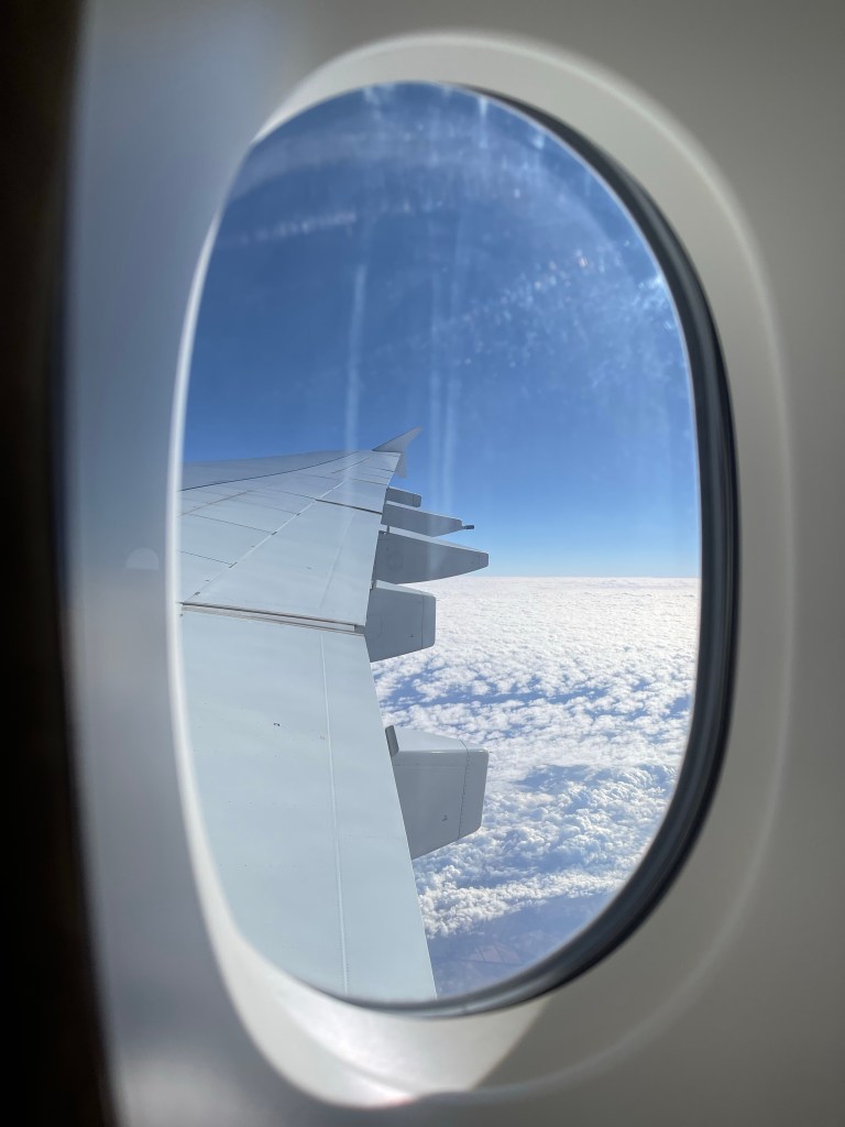Der Flug ist sehr ruhig. Das Flugzeug ist gefühlt nur zu einem Drittel (Evtl weniger) besetzt. Viola streckt sich auf einer Vierersitzbank aus und verschläft fast den ganzen Flug. Sie ist offenbar geschafft vom Tun zuvor und urlaubsreif. Nun machen wir ganz oft ohhhhmmmm
