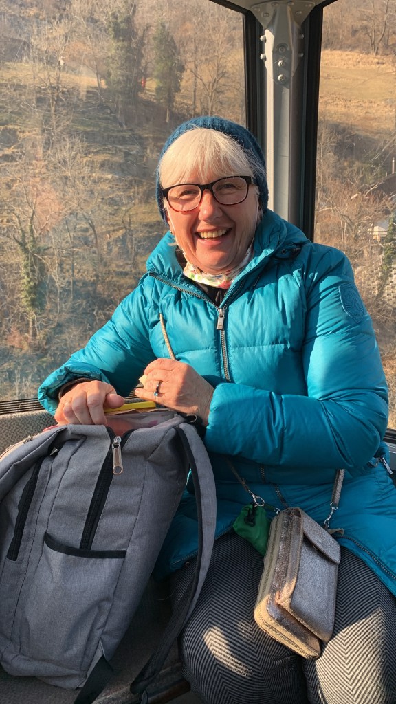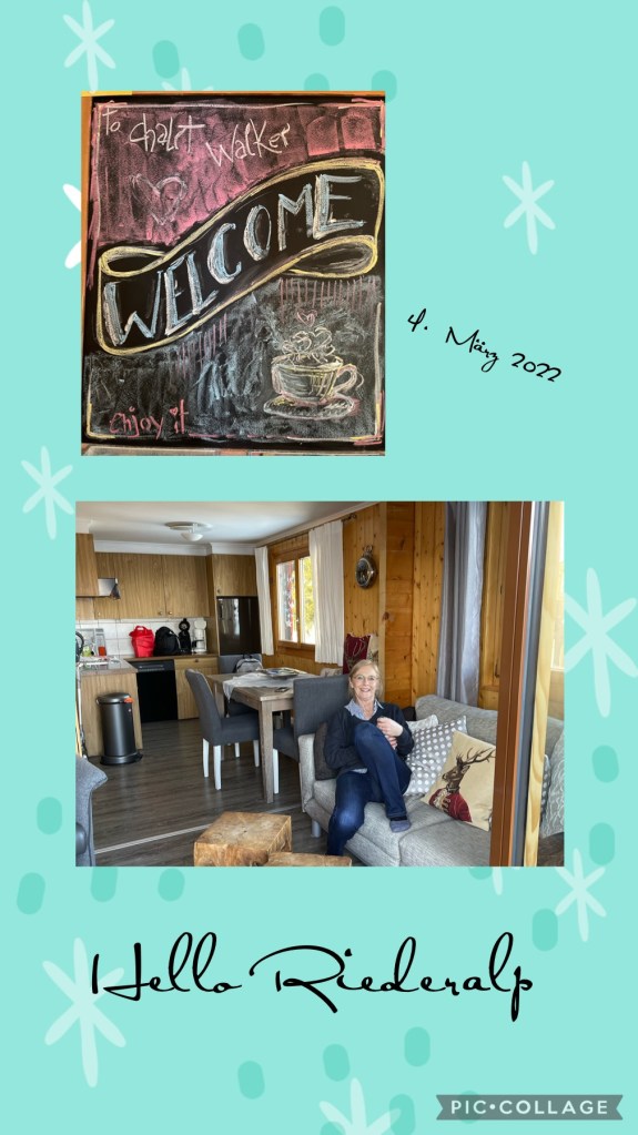 6.3.22 starten Annette und ich in unseren Mädelsurlaub auf die Alp. Rolli fährt uns um 8 Uhr nach Hagen. Von dort aus geht es für uns beide für 212,60 Euro -. 1. Klasse / Europa Spezial über Basel / Bern nach Mörel und rauf in die autofreie Zone der Riederalp. Ich bin kaputt und schlafe natürlich während der Bahn-Fahrt ein. Per Auto würden wir ca 350 Euro in die Hand nehmen müssen. Sprit, verlade, Parkgebühren usw