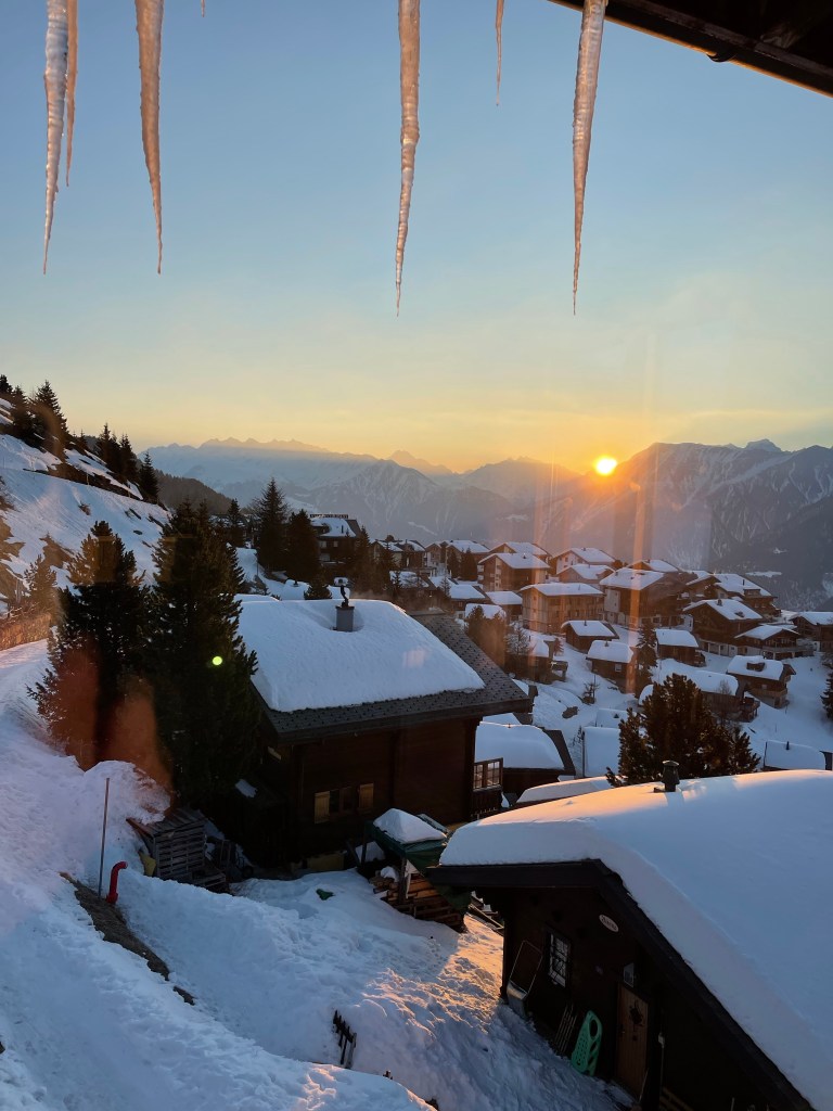 Aber, wenn der Frühling kommt ziehen dort wieder Leute (pro natura) ein. Die gehen dann mit den Gästen durch den Aletschwald. Tiere beobachten, auf dem Aletsch-Gletscher wandern und zur Hängebrücke laufen. Aber das kann man im Winter alles nicht.