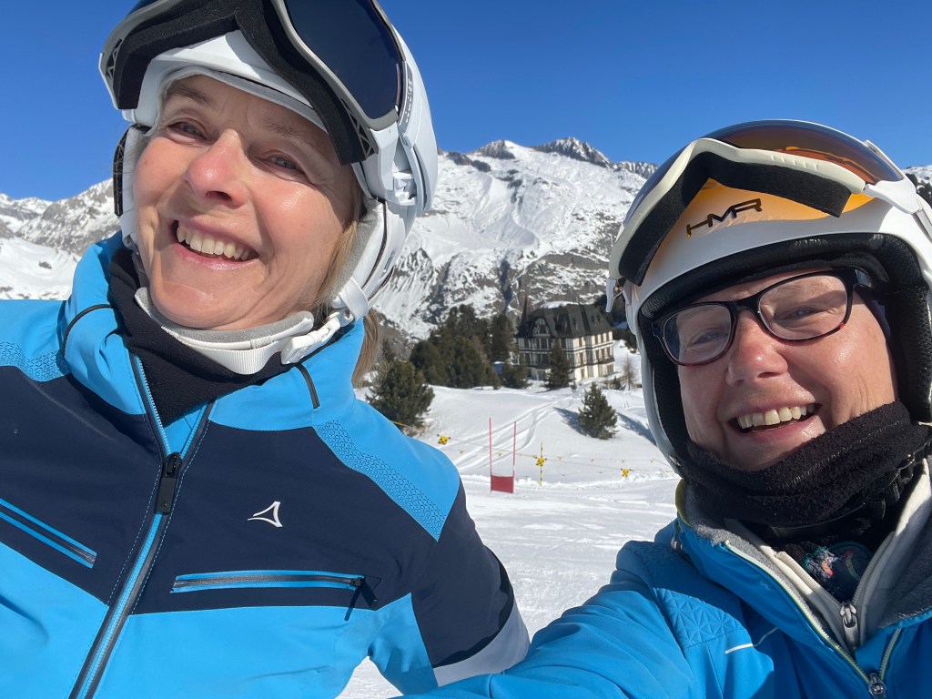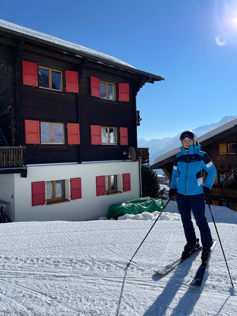 Wie so oft ist es im Tal grün. Doch wir haben keine Sorge, dass es oben keinen Schnee gibt! Das hat bisher immer gepasst! Und tatsächlich ist es weiß als wir aussteigen. Toller, fester Schnee. Den Koffer müssen wir durch den Schnee ziehen! Puh – das heißt Annette. Ich reise mit kleinem Gepäckstück. Mein grauer Rucksack von Carina aus Shanghai ist dabei.