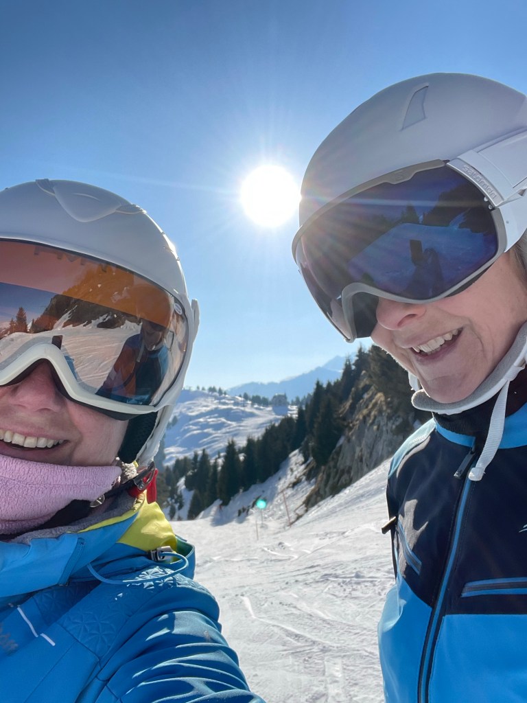 Wir knattern den „Heimat“ Lift und sammeln Ski Kilometer. Die Piste ist wirklich grandios. Auch sind die Gleitschirme am Himmel. Es muss soooo eisekalt dort oben sein. Manche Piloten haben Ski an den Füßen.