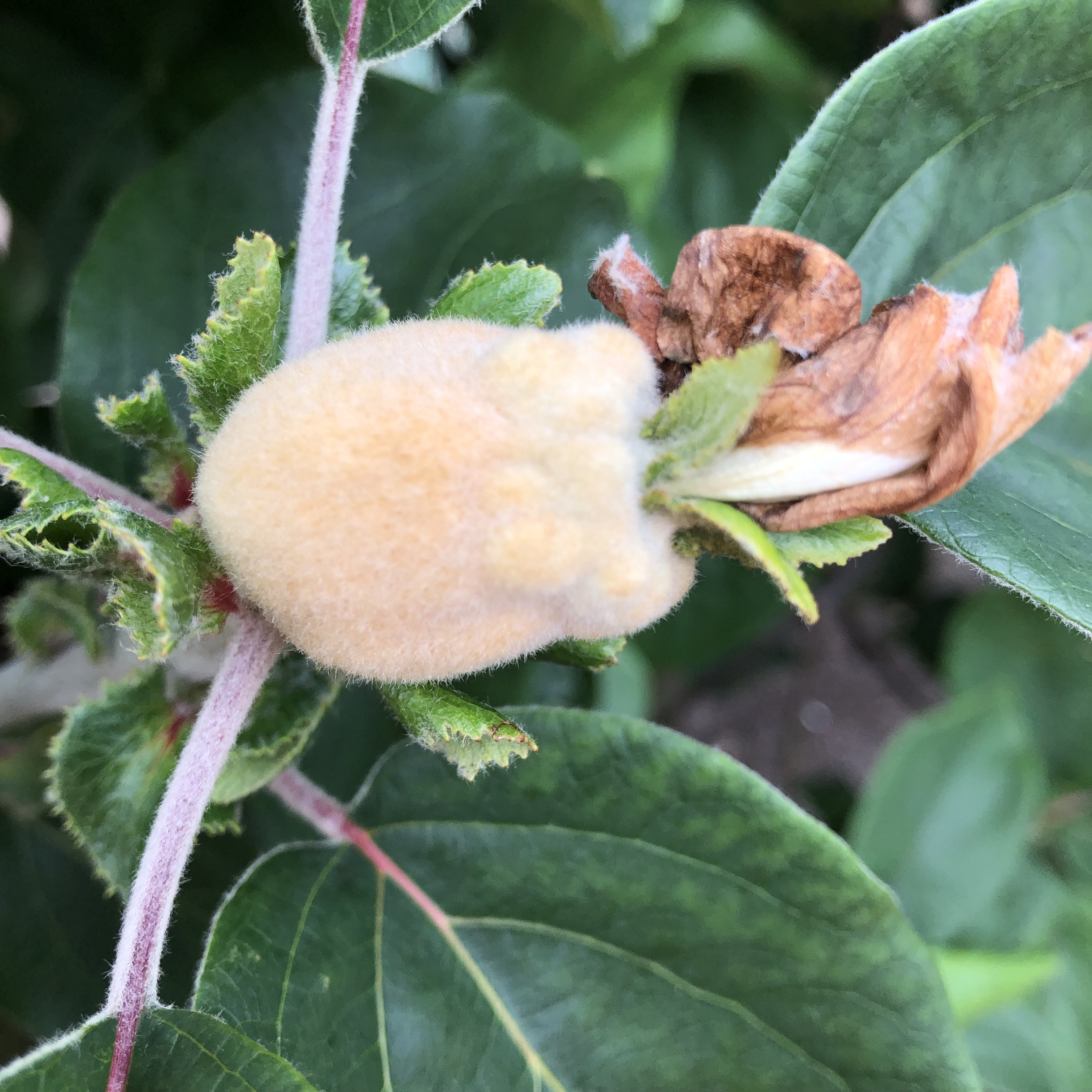 Eine Hecke blühte mit dieser Frucht, die die Mitarbeiter nicht benennen konnten. Maracuja (Passionsfrucht) ist es nicht.