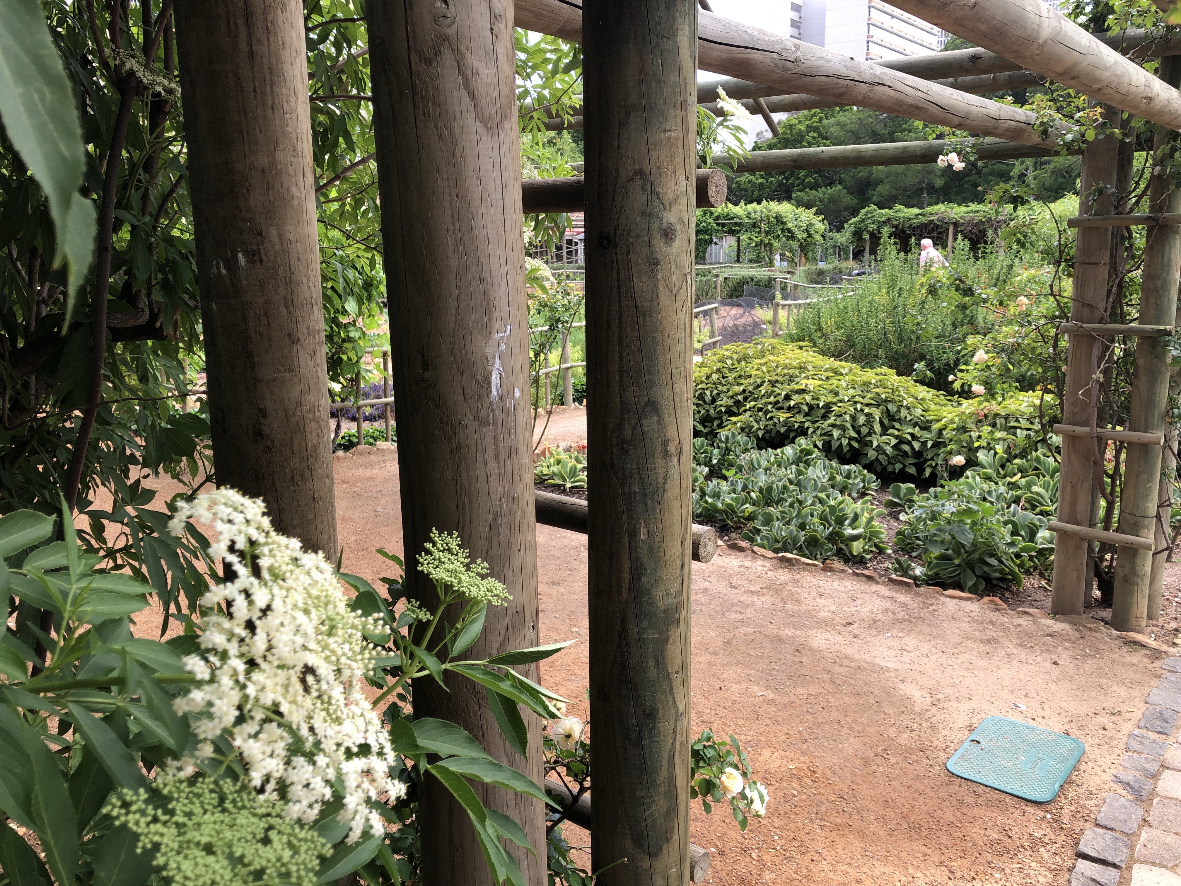 Im Gemüsegarten finde ich einen blühende Holunder. Ich könnte Blüten mitnehmenden frischen Sirup aufsetzen.