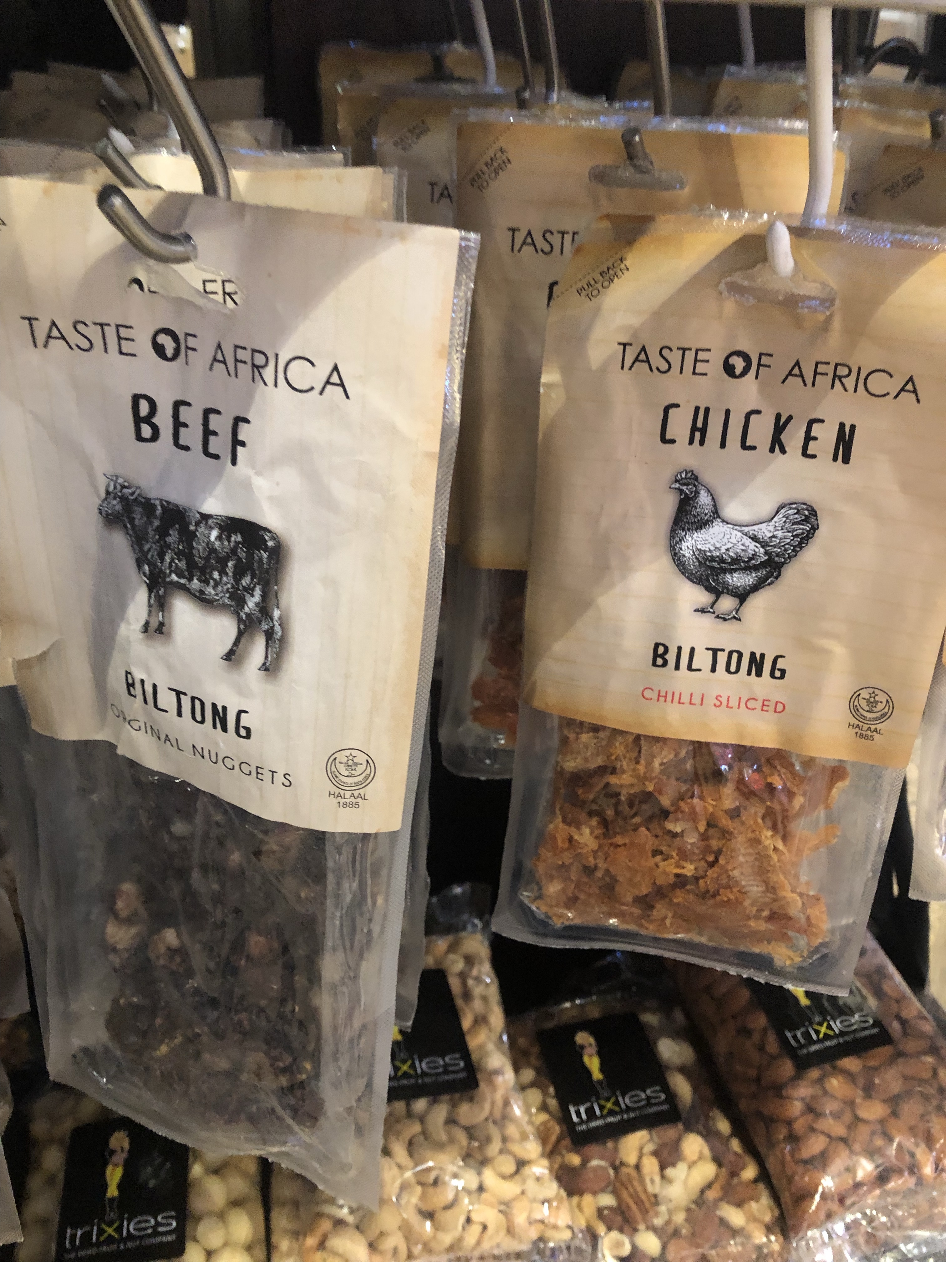 Auf dem Weg zum 6-District Museum sind schon viele Stände mit der südafrikanischen Spezialität „Biltong“ aufgebaut.