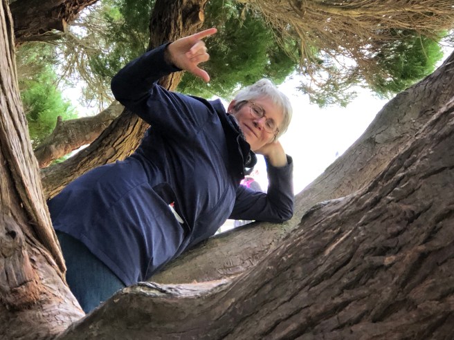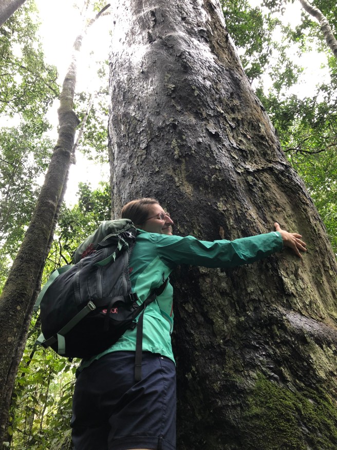Wir sind echt baff. So viele alte Bäume, den Ozean im Hintergrund – wow!