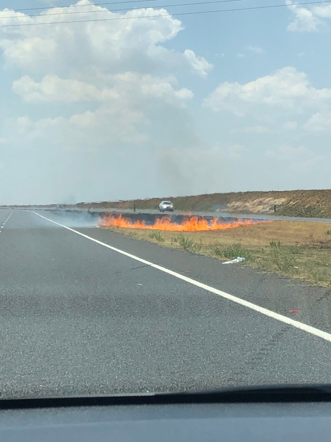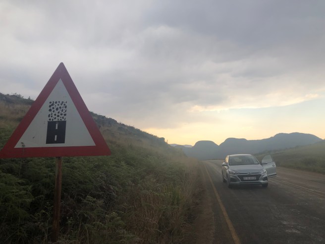 Der Abendhimmel wird immer dunkler. Es kracht und blitzt was das Zeug hält. Nach der heutigen Hitze von 42 Grad ist dieses Gewitter kein Wunder. Begleitet von den hell erstrahlenden Blitzen und der Gewissheit in einem Faradayischen Käfig zu sitzen, kommen wir auf der asphaltierten Straße an. Nun geht es rechts weiter bis zum Ende der Ausbaustrecke.