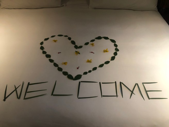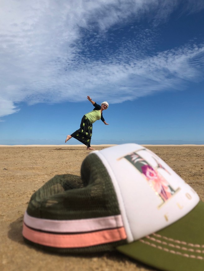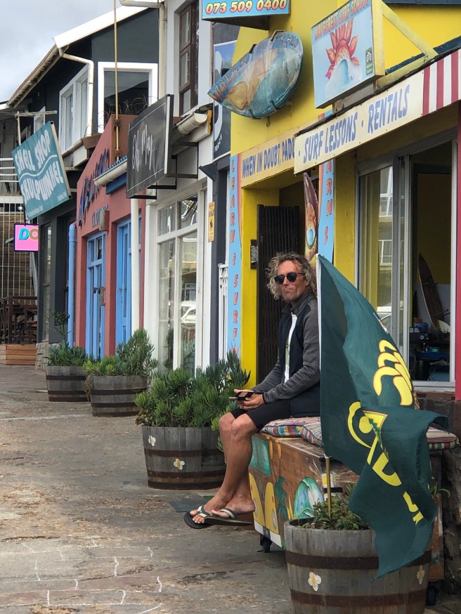 6 Uhr auf der Welle reiten. Wahrscheinlich ist er einer derjenigen, die vor unserem Appartement gesehen werden. Dann duschen und 7:30 h die ersten Schüler/innen begrüßten. Von da an spielt er auf seiner Bank sitzend mit den vorbeigehenden Menschen. Heute ist es das alte Hüpfspiel auf dem Boden. Gestern war es eine Gummischlange die für Aufregung gesorgt hat. Schade, dass wir seine Idee morgen nicht mehr mitbekommen. So fängt er seine Kunden. Wie der Tag weiter verläuft weiß ich nicht. Essen – sitzen – surfen – feiern? Zum surfen beschreibt er eine Destination in Indonesien (heute Malaysia). Auch diskutieren wir kurz über den Brexit. Doch er ist weit weg aus seinem Heimatland.