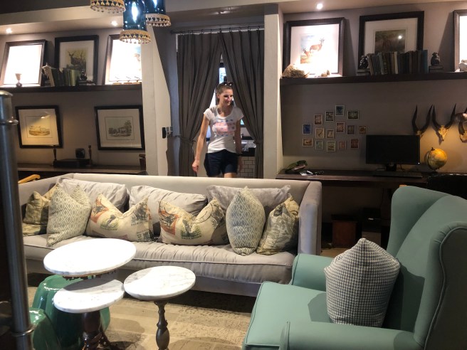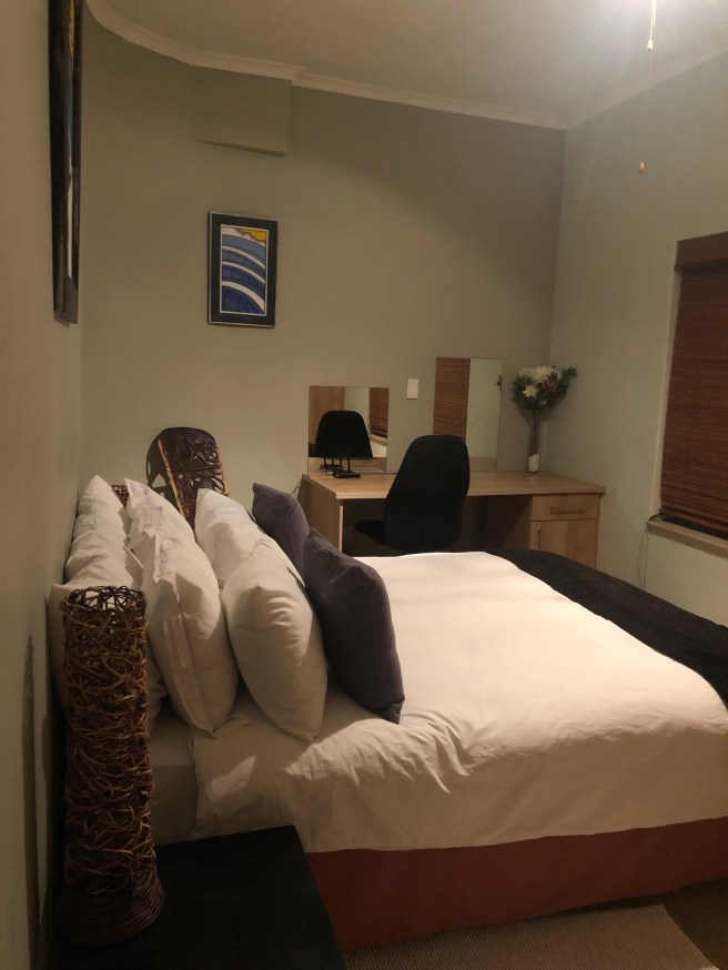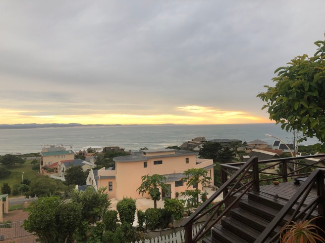 Dieser Ausblick gehört für zwei Tage uns! Wir nächtigen im La Vista hoch über dem Ozean. Plettenberg Bay ist eine sehr moderne Stadt und besteht offensichtlich aus vielen Bergen und Hügeln. Es ist sehr grün und sauber. Schicke Häuser, Villen um uns herum.