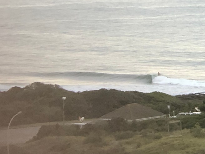 Dann erst geht der Blick zum den Surfern. Wirklich sind die ersten Surfer bereits im Wasser. Unglaublich! Ich gehe zurück ins Bett.