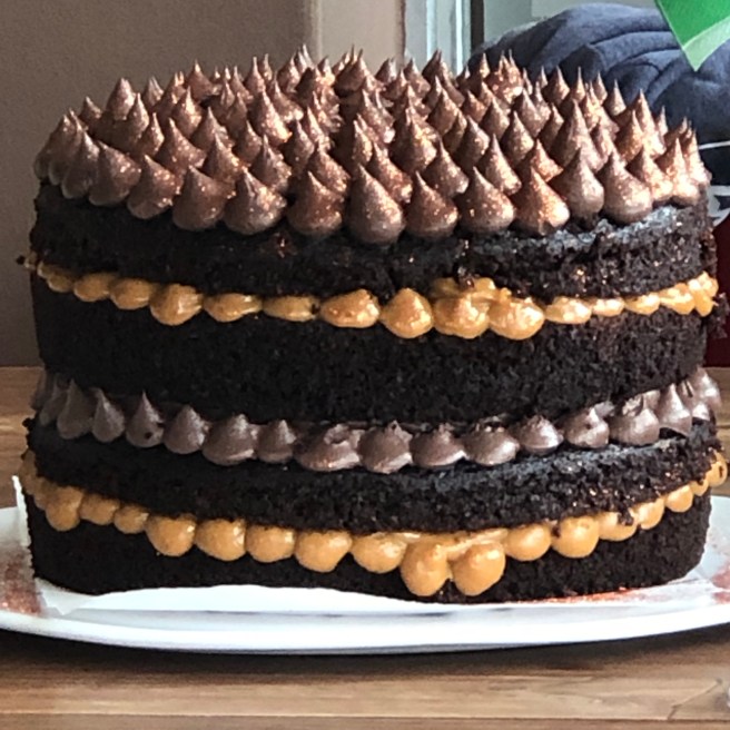 Am Nebentisch wird gefeiert. Zur Feier des Tages gibt es eine Glitzer-Schoko-Torte. Der Wahnsinn, aber bildschön.