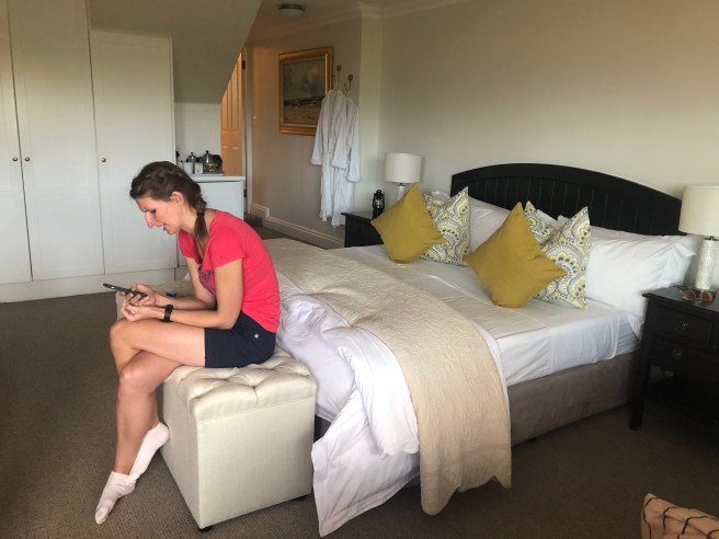 Den Blick in die unter uns liegende Bucht genießen wir noch einen Moment und fallen dann mit guten Träumen in das weiche Bett.